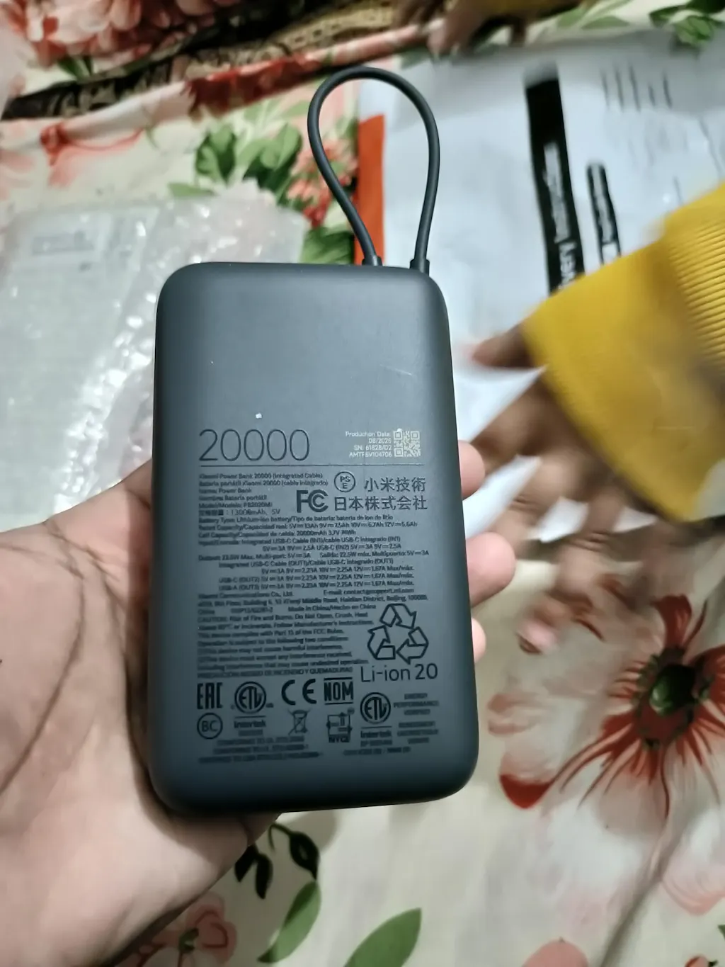 With Xiaomi Power Bank 20000mAh (integrated Cable) you will get three power outlets. Along with an integrated cable port, there is a USB-C and USB-A port available. It lets you charge three devices at the same time. means, no waiting for one device to be fed for the other. You can charge all your devices in a go specifically when traveling or working remotely.